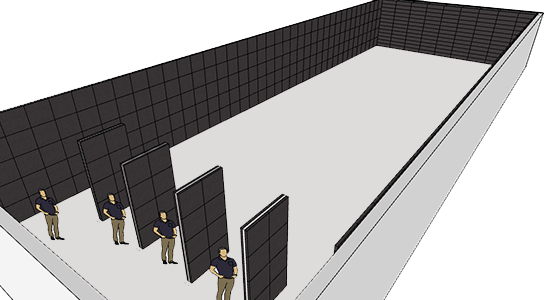 Instalación de mamparas divisoras entre cada estación de tiro previniendo accidentes entre los usuarios.